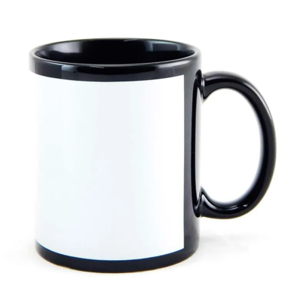 • Caneca de Cerâmica Preta com Faixa Branca para Sublimação – 325 ml